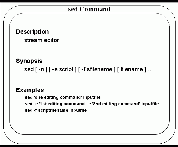 sed(1) is a stream line editor that reads input from piped data or named files. Such input is processed as follows: